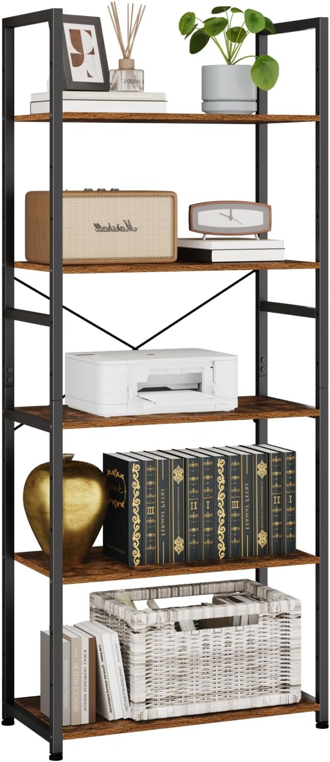 - 【Space-Saving】---This 5-tier shelf narrow bookcase shelf maximizes storage space without taking up too much floor space, ideal for organizing books, decorations, tools and more.