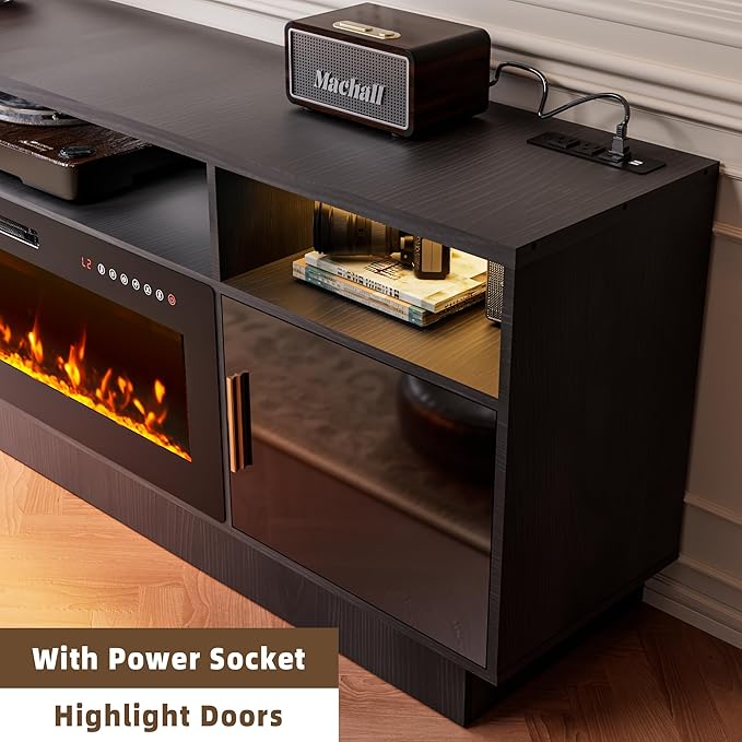 - Built-in Power Center – 3 AC Outlets & USB Ports Say goodbye to messy cords! This TV stand features a smartly integrated power strip with three standard AC outlets and USB charging ports, perfect for powering your TV, sound system, gaming consoles, and keeping your phones and tablets fully charged — all in one sleek setup. Designed for today’s connected lifestyle, it keeps your entertainment zone neat and organized.