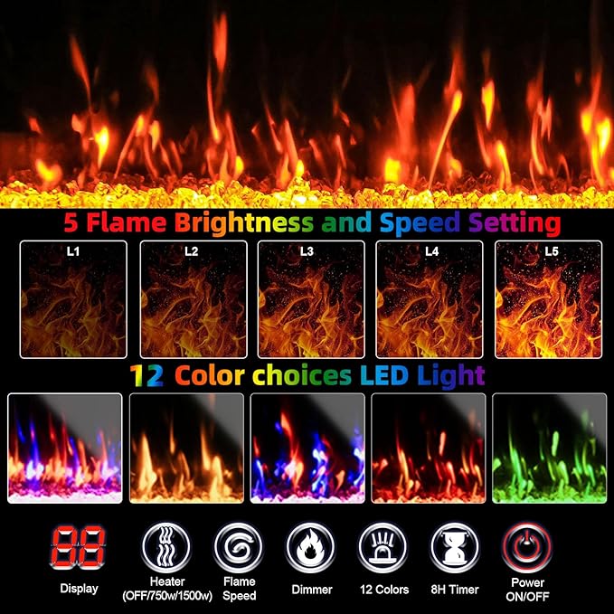 - 42" Electric Fireplace – Cozy Ambiance Year-Round The built-in 42" electric fireplace brings instant charm and comfort to your space. Featuring ultra-realistic LED flame effects, adjustable brightness levels, and independent heat and flame controls, it’s perfect for setting the mood any time of year. Enjoy a beautiful, glowing fire even in the summer — or cozy up with real warmth in winter.