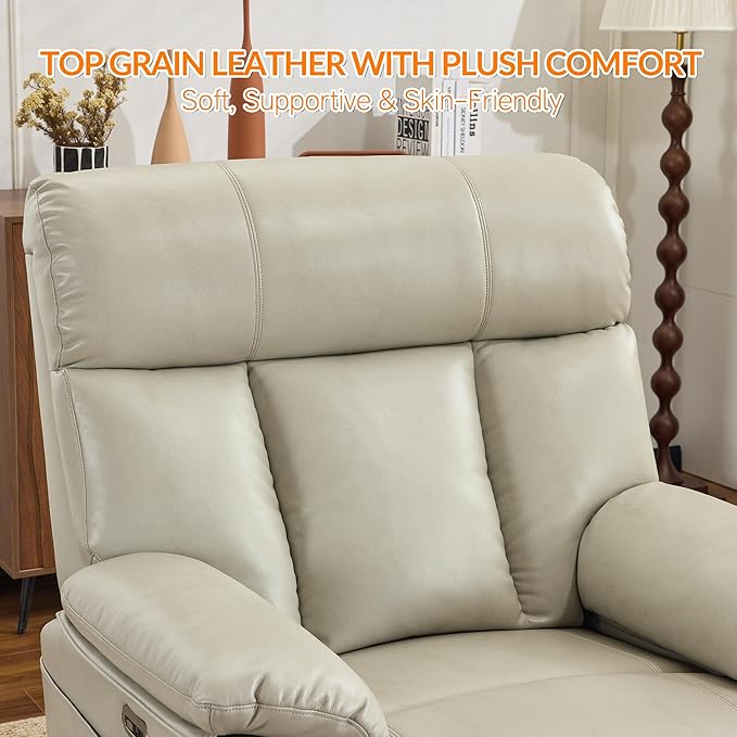 - Top Grain Leather – Premium Comfort & Easy Care:Upholstered in genuine top grain leather, this recliner brings both elegance and durability to your living space. It’s soft to the touch, resistant to wear, and easy to clean—ideal for everyday use.