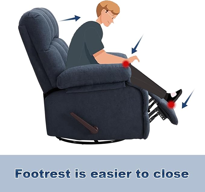 - 【FULL RANGE OF MOTION 】:Stay energized even when you're resting. Our rocking recliner offer a full 360-degree swivel and 30-degree rocking, allowing you to easily turn in any direction to help eliminate stress and fatigue.