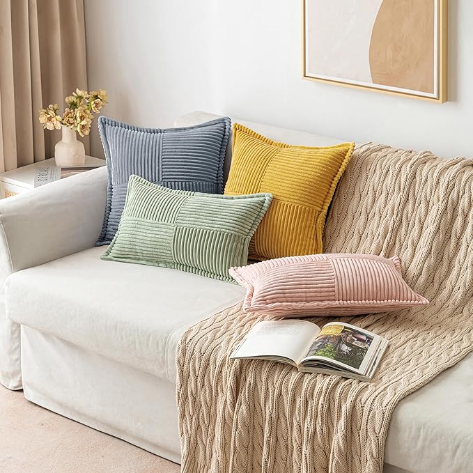 - 【Unique Design】 The corduroy stripes are spliced in different directions in a unique design. The artful arrangement creates an eye - catching visual effect, making them a perfect decorative accent for your couch or bed.