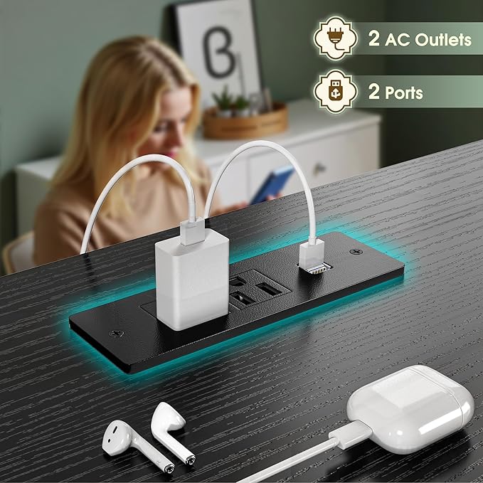 - 【Built-in charging station】The TV Media Console Table is equipped with a built-in power outlet featuring 2 AC outlets and 2 ports for charging multiple devices at the same time, such as cell phones, headphones, watches, laptops or desk lamps. No additional extension cords are needed, making desktop charging simple and efficient