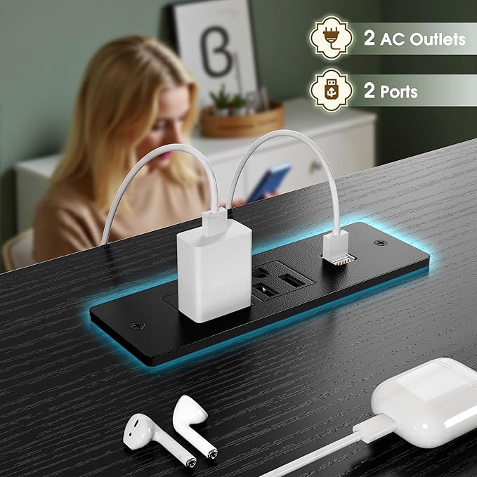 - 【Built-in charging station】The TV Media Console Table is equipped with a built-in power outlet featuring 2 AC outlets and 2 ports for charging multiple devices at the same time, such as cell phones, headphones, watches, laptops or desk lamps. No additional extension cords are needed, making desktop charging simple and efficient