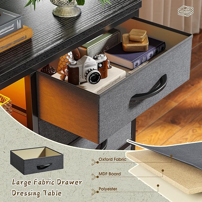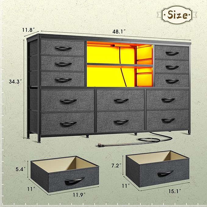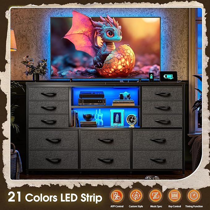 - 【Bedroom Dresser with LED Lights】This contemporary chest of drawers features integrated LED lighting with 21+ customizable colors, controllable via remote or smart app. Easily adjust ambient lighting to complement your décor and mood, transforming functional storage into a striking design statement