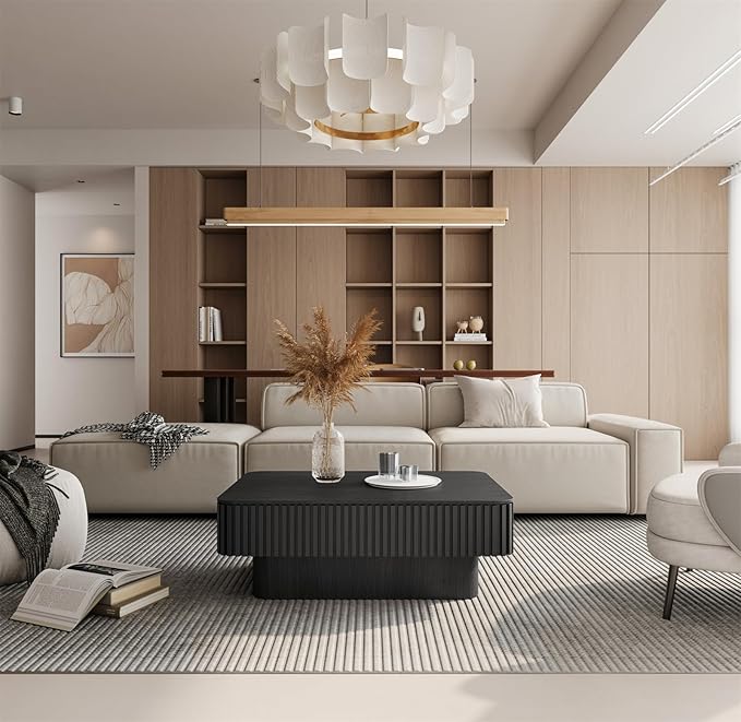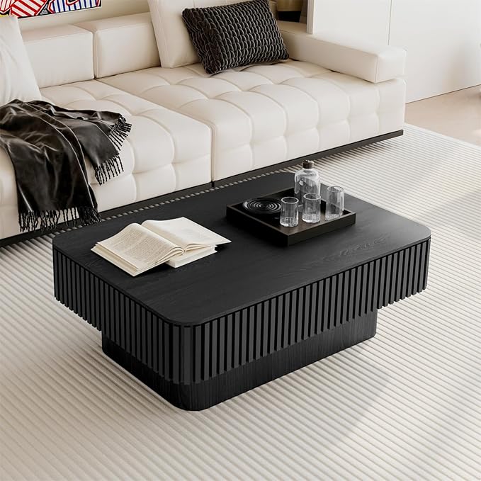 Lift Top Coffee Table for Living Room,Rectangle Handmade Solid Wood Strips, Fluted Coffee Table with Hidden Storage Compartment for Small Space Office Apartment (38.6"L×26.8''W×13.8''H-Black)