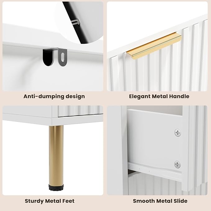 - 【Eco-Friendly and Odorless】 Made from robust P2 certified MDF, this modern white fluted dresser is designed for durability and environmental responsibility, creating a space that is both healthy and visually pleasing. It makes an excellent housewarming gift for family, friends, or loved ones.
