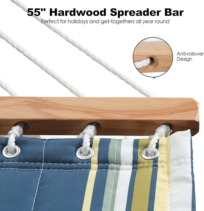 - ✅HARDWOOD SPREADER BAR & HOLD UP TO 475LBS: The 55-inch wide hardwood spreader bar adds a touch of rustic elegance while providing sturdy support, the handcrafted cotton ropes and steel chain relaxation for you and your companions.
