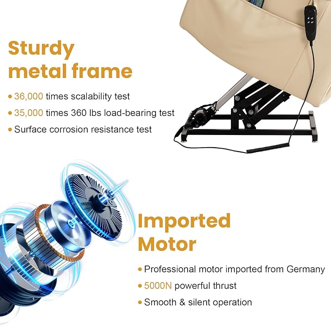 - Special Feature : Durable Ergonomic Design, Dual Motor, Adjustable Height,Power Lift, Heated, Massage