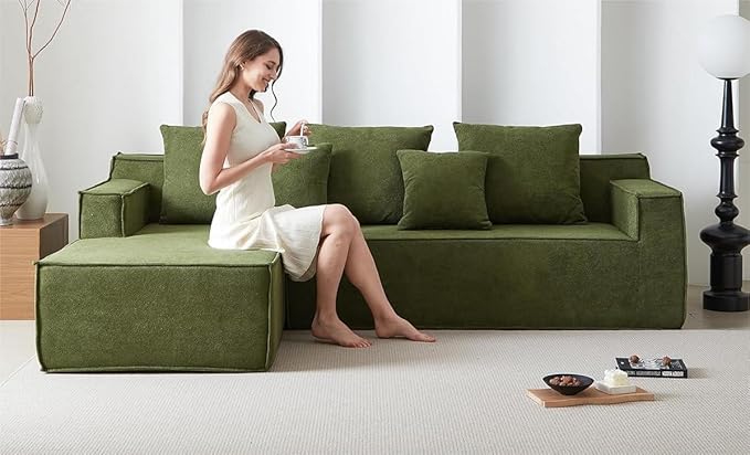 L-Shape 7-Seater Sofa,Upholstered Couches for Living Room Bedroom,No Assembly,Green