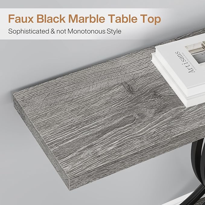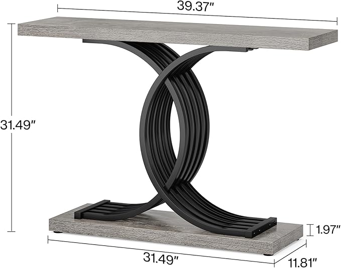- Strong Metal Base : The legs of the gray accent table are formed by 3 sets of patterns, each of which consists of two overlapping letters "C" facing each other, and the material is 2.36" by 0.78" strong metal with grain texture, which means this farmhouse console table is not only visually appealing but also provides excellent stability and support.