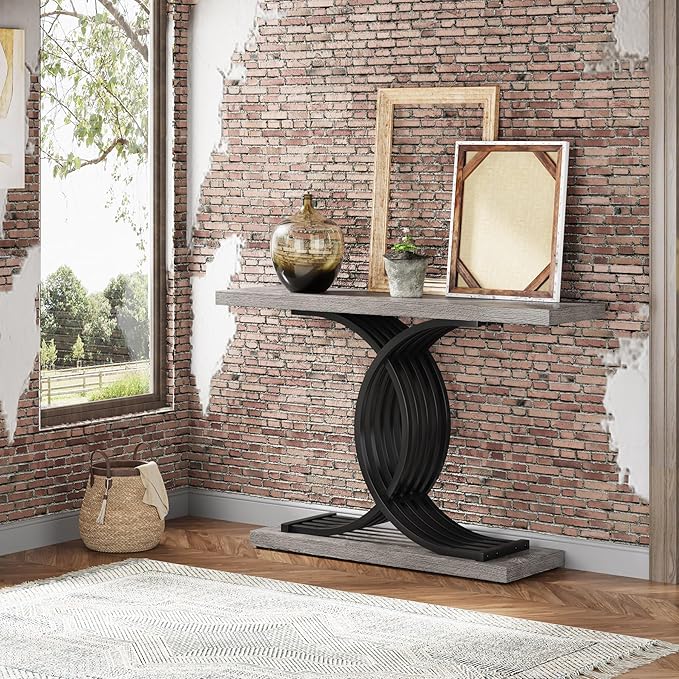 - Farmhouse Theme: Gray color scheme, vivid wood grain texture, and eye-catching outlook perfectly blend farmhouse, vintage, and modern design elements, this console table adds a touch of sophistication and charm to your hallway, entryway, front door, living room, foyer, or entrance.