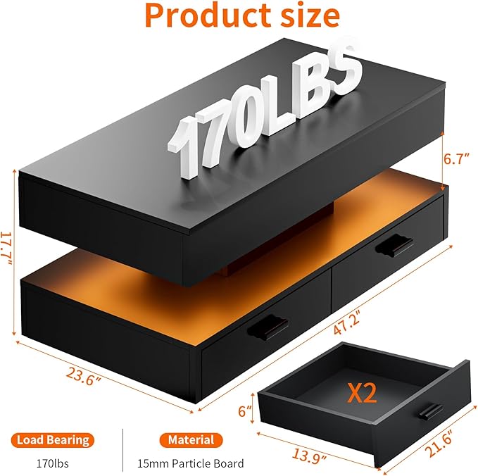 - Ample Storage Solutions:Storage coffee table with 2 smooth-sliding drawers for everyday items and a spacious open shelf in the center. The large tabletop provides generous surface space, while the minimalist design complements any home, office, or retail setting—endless possibilities in one sleek piece.