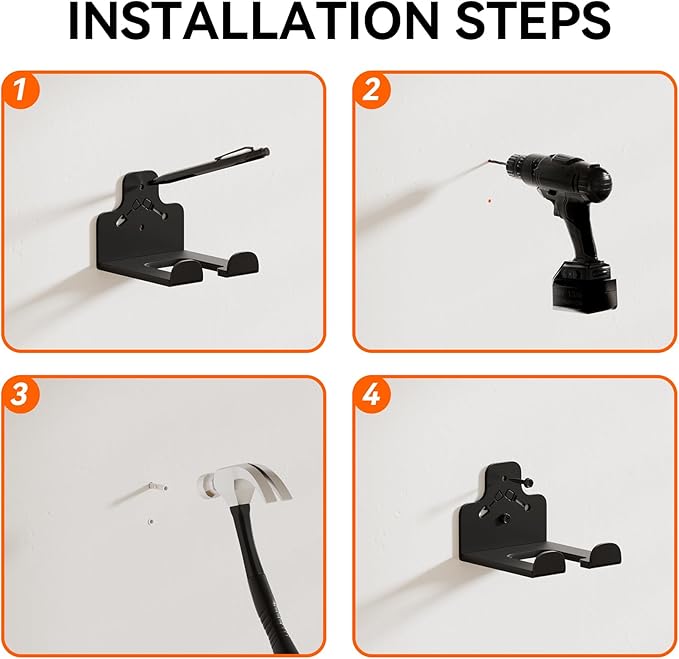 - Multi-Purpose & Space Saving: Garden power tool hanger for multiuse can hold up to various tools in your garage or yard, like shovels rakes, brooms, mops, drills, sports equipment, hoses, cables, cord and so on
