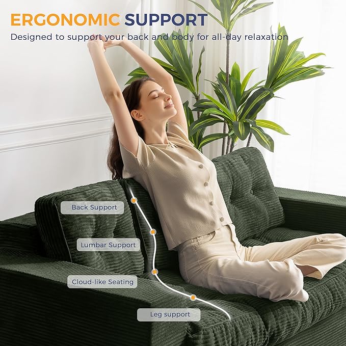 - Textured Corded Fabric: Wrapped in premium corduroy, this sofa couch in a box delivers a soft, skin-friendly feel with stylish ribbed texture. Durable and breathable, it's made to stay plush and beautiful through everyday lounging