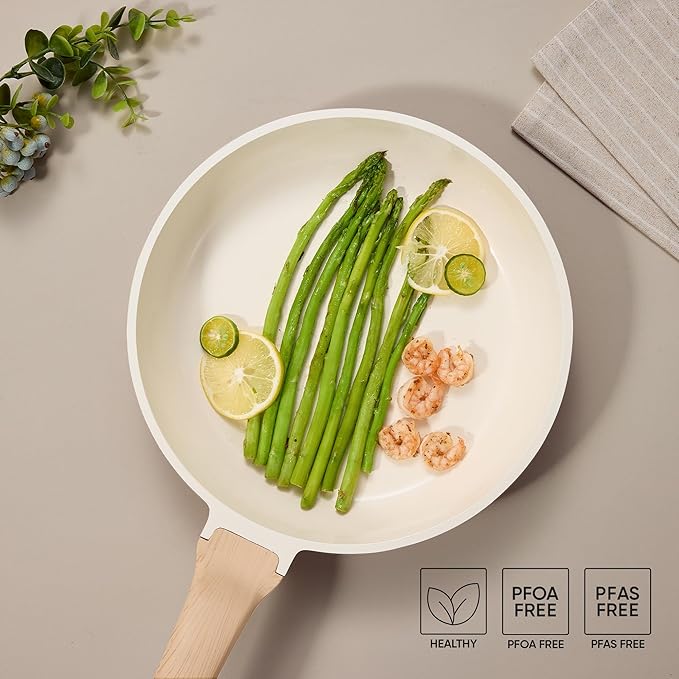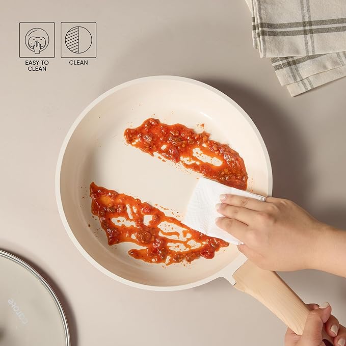 - Ceramic nonstick coating with durability of perfection is free of PFOA, PFOS, and the other harmful chemicals. You can enjoy your cooking on carote cookware safely & easily.