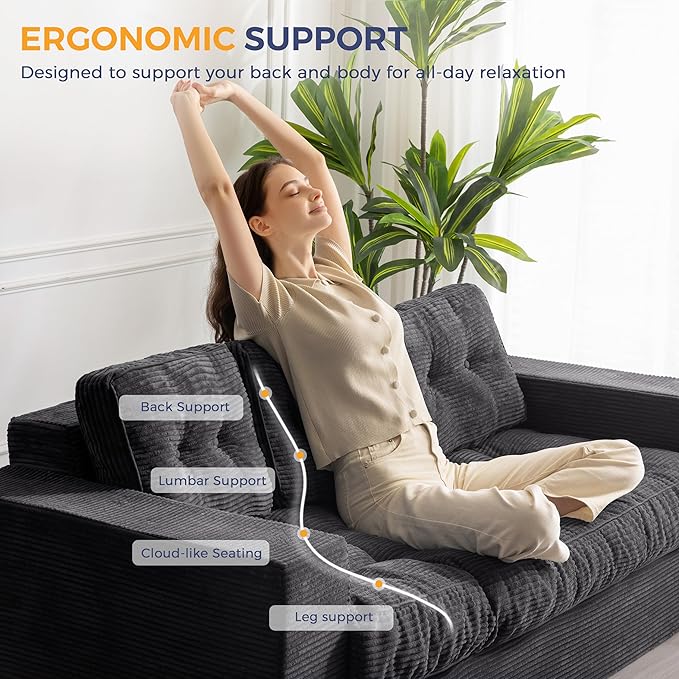 - Textured Corded Fabric: Wrapped in premium corduroy, this sofa couch in a box delivers a soft, skin-friendly feel with stylish ribbed texture. Durable and breathable, it's made to stay plush and beautiful through everyday lounging