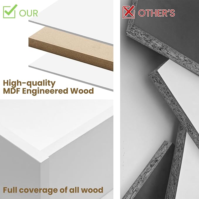 - 【Elegant and Modern Dresser】CHUWELL dresser for bedroom is composed of white and black color,which is the most classic of simple style. Its stylish and elegant style, complete with rounded handles, adds a cozy touch to any space. The white dresser exquisite craftsmanship enhances the beauty of any space, creating a clean and tidy atmosphere