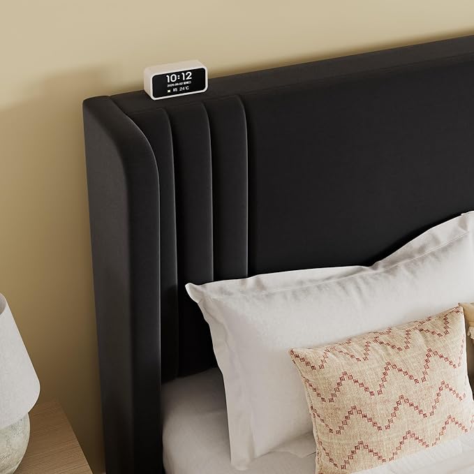- Elevated Comfort Design: This velvet bed showcases a generously padded wingback headboard, offering exceptional support for relaxed sitting or reading in bed. The structured sides provide reinforced stability while naturally keeping your mattress stay