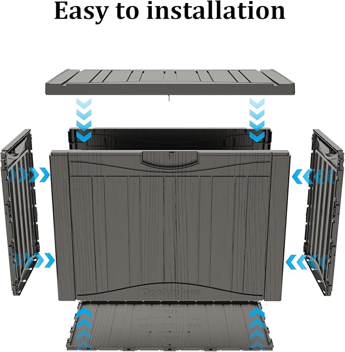 - 🌞【20-minute Quick Assembly】Designed for hassle-free setup, this deck box requires no tools and assembles in under 20 minutes with step-by-step instructions. The smooth-opening hinges and lightweight panels streamline storage access for busy homeowners.