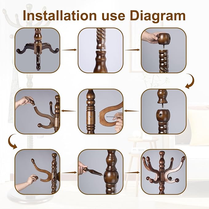 - EFFORTLESS AND QUICK ASSEMBLY: The coat rack comes together effortlessly in mere minutes. Simply tighten the frame poles and hooks with the threaded inserts, and your coat rack is ready to use. No complicated tools required. Save time and effort to enjoy a convenient lifestyle and effortlessly create a stylish home of your own.