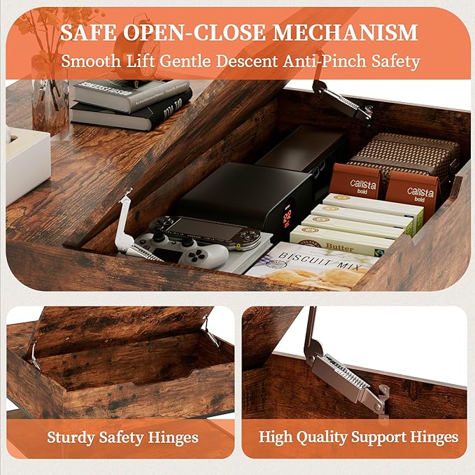 - 【Abundant Hidden & Open Storage】 This FLIXELIO coffee table comes with a large hidden storage space under the half-open top, ideal for storing items like blankets, magazines, and remote controls to keep your living room neat and tidy. Additionally, it has 2 open compartments and a full-length independent storage shelf, offering easy access to frequently used items such as books, coasters, or snacks.