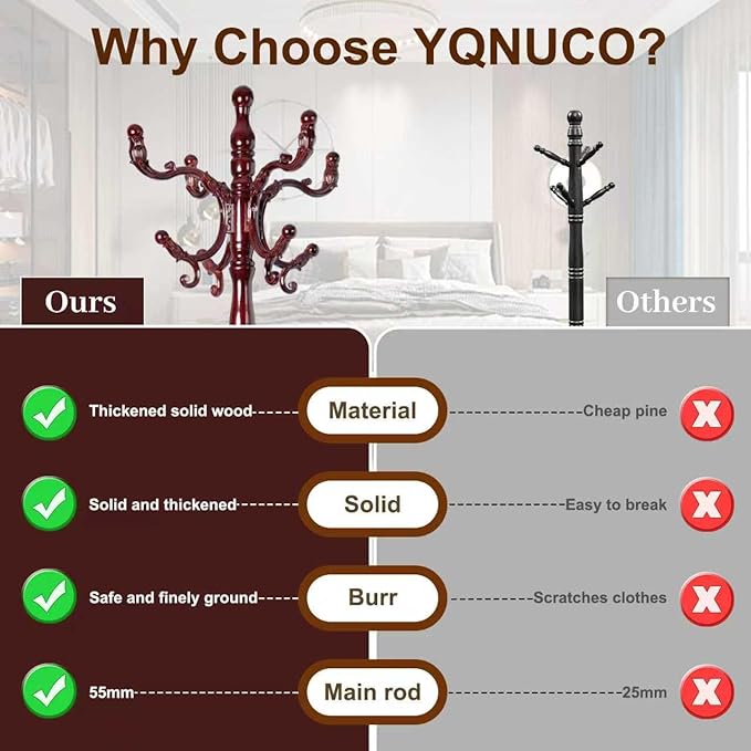 - AAA LEVEL BIRCH WOODEN MATERIAL: This coat rack is crafted from high quality solid birch wood, ensuring durability and a sturdy structure capable of holding your clothes and items without wobbling. The freestanding coat rack’s double-thickened, round base offers excellent stability. It’s a reliable choice that brings both steadiness and elegance to your home!