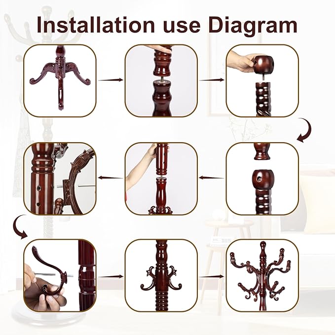- EFFORTLESS AND QUICK ASSEMBLY: The coat rack comes together effortlessly in mere minutes. Simply tighten the frame poles and hooks with the threaded inserts, and your coat rack is ready to use. No complicated tools required. Save time and effort to enjoy a convenient lifestyle and effortlessly create a stylish home of your own.