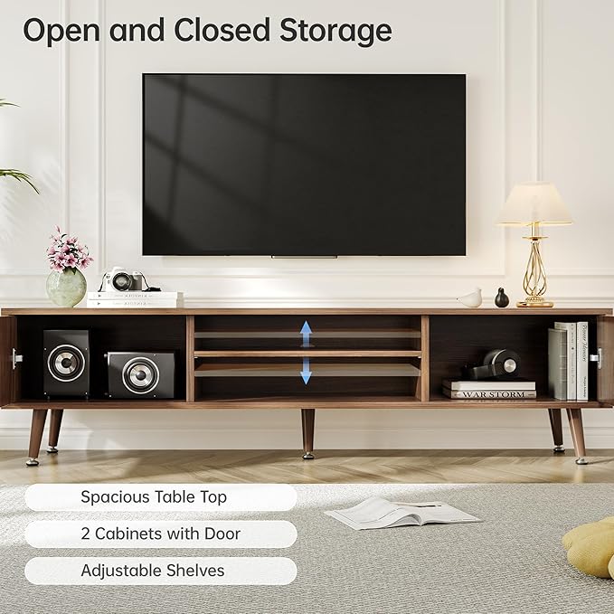 Mid Century TV Stand, Modern TV Console for TVs up to 70 Inches, Entertainment Center with Storage, TV and Media Consol, 62 Inch (Walnut)