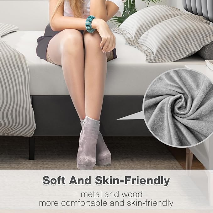 - 【Elevate Your Bedroom Aesthetic】Our upholstered bed frame features a sophisticated gray color and high-quality soft fabric, adding a touch of elegance to any bedroom while providing comfort and style.