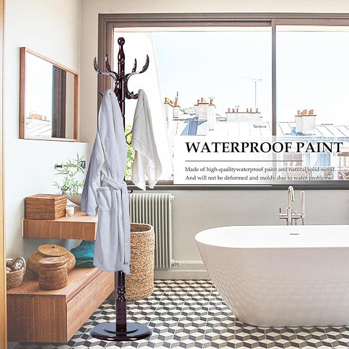 - 【Details Matter】We know you are worried about whether wood is healthy. Please rest assured that thick wood hanger using high quality wood. Safe paint. The coat hanger stand's hooks surface is designed with rounded arc which is smoother without burrs, no damage to clothes.