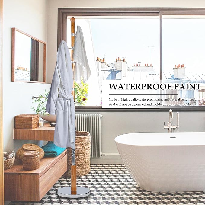 - 【A Stable Tree】 What good is a coat rack that falls over the moment you put a coat on the hook? Our coat tree made with 3.14" bold, solid wood pole and 13.4" diameter heavy-duty disc base, so you can tidy your room with confidence.