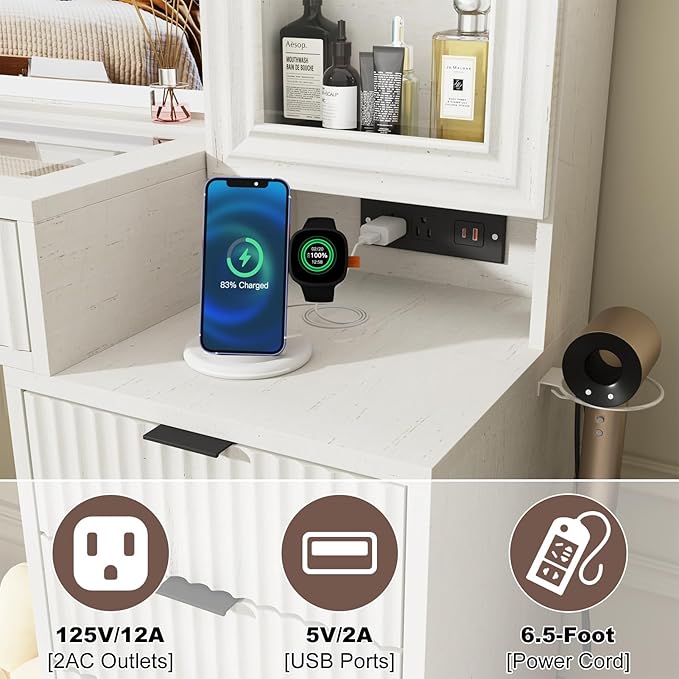 - Vanity Desk with Charging Station: Equipped with a built-in charging station, the vanity desk allows you to conveniently charge your electronic devices, ensuring you stay connected while getting ready.