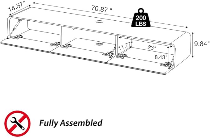 - Fully Assembled TV Console: The floating tv stand is pre assembled before delivery, you only need to install it on the wall by refering the instruction. Weight Capacity: 110 LBS
