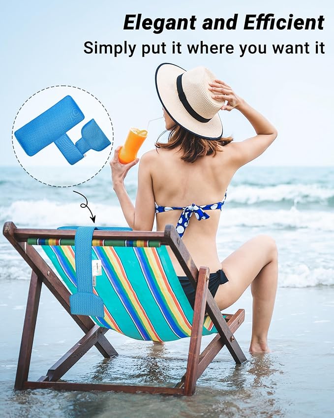 Headrest Pillow for Pool Chaise Lounge with Strap 2pcs Outdoor Ledge Lounger Hot Tub Spa Chair Cushion