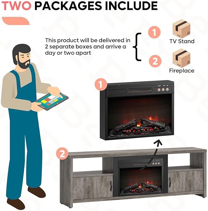 - Hassle-Free Assembly Support: All parts clearly numbered for easy identification and assembly. Contact us for assistance with this TV stand with fireplace setup or product questions.
