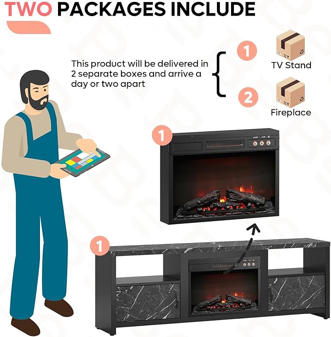 - Hassle-Free Assembly Support: All parts clearly numbered for easy identification and assembly. Contact us for assistance with this TV stand with fireplace setup or product questions.