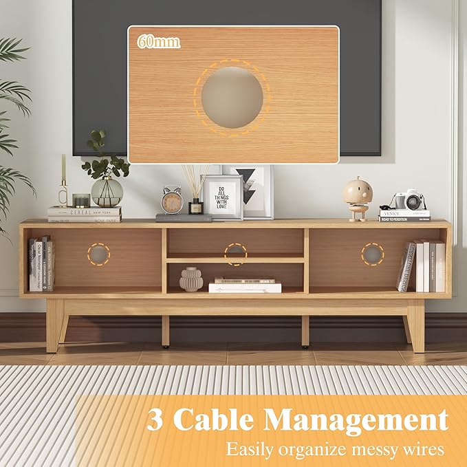 - Cord Management: Tired of tangled cables and unsightly cords? This TV console table comes with 3 built-in cord-management features that help keep your entertainment area tidy. The dedicated openings and compartments allow you to organize and conceal HDMI and power cables, reducing clutter to create a clean, streamlined look