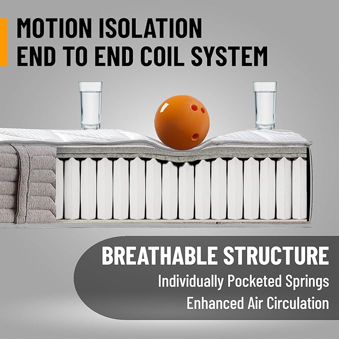 - [Edge-to-Edge Coil System for Maximum Coverage]: Designed with individually wrapped coils extending to the edges, ensuring consistent support across the mattress surface. While edges are slightly less firm, this design maximizes sleepable area without compromising overall quality.