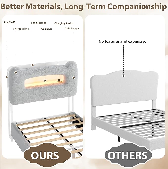 - 【Abundant-Multi-functional storage space】This bed frame for children has large capacity sliding drawers that offer ample place to collect sheets,accessories, and off-season clothing.There is hidden storage on the inside of the headbord where you can put your privacy stuff.Also storage shelves in the headboard provide enough space to charge or place your phones,clocks,ipad,glasses, and other decorations,etc.
