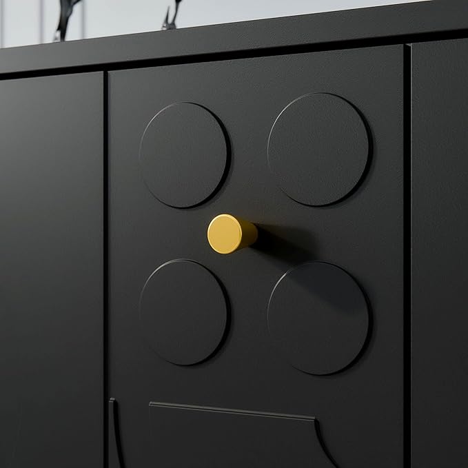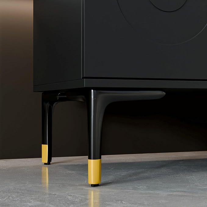 - Modern Appearance Design: This storage side cabinet is designed with beautiful lines, a black base color with stylish texture, adding a sense of hierarchy and three-dimensionality. The cabinet door with metal style conical handles, as well as the cabinet foot design, adds a touch of unique artistic flavor to your living room. It not only organizes, but also becomes a decorative highlight of your living room!