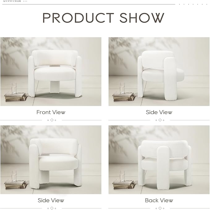 - 3-Legs Design & Curved Backrest: The barrel chair has a gently curved backrest that wraps around you, creating a cozy and inviting feel. The sleek, minimalist three-legged design offers stable support while adding a modern, stylish touch. With clean lines and timeless design, the living room armchairs effortlessly complement a variety of interior styles—from contemporary to Scandinavian and beyond.
