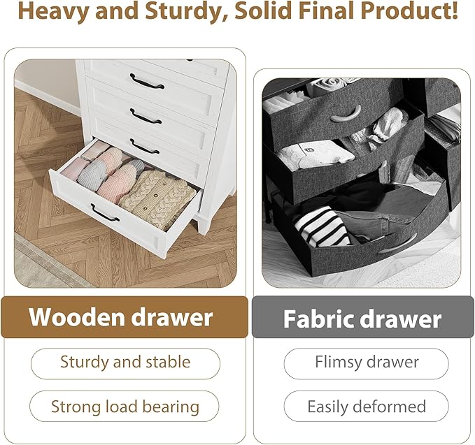 - STURDY STRUCTURE: Made from high-quality MDF engineered wood, this dresser is built for lasting durability and strength. The 25mm thick waterproof tabletop offers excellent stability. Overall dimensions are 31.5" L x 15.8" W x 41.3" H. An anti-tipping device is included for enhanced safety