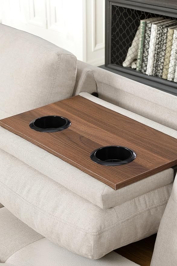 - Sectional Couch with 2 Cup Holders - Each piece features a solid and manufactured wood frame that rests on low-profile dowel legs. Wrapped in sleek, neutral-toned Linen, this set's cushions are filled with foam and have eight-way hand-tied springs to limit sagging over time. Rounded arms, subtle tufting, and nailhead trim complete this traditional design, One of the middle seats pulls down to reveal two cup holders for your favorite beverages