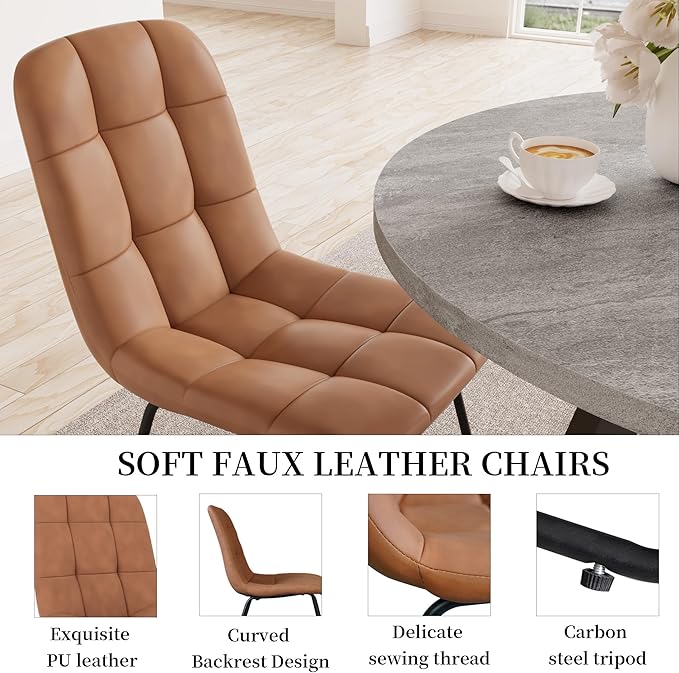 - Modern Round Table Set: This stylish round dining table set features a round table crafted from thick MDF material with a unique textured finish, complemented by 4 PU leather chairs with ergonomic curved backs and high-elastic sponge seats.