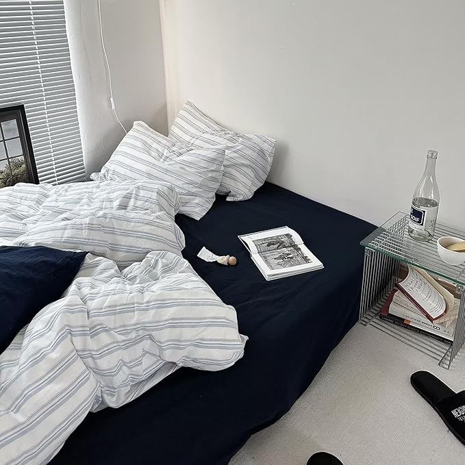 - ★【Thoughtful Details】--The full lightweight comforter with four corner loops at each of the corners, make it easy and efficient to fix your duvet cover. Pillowcase enclosure prevents the pillow insert from spilling out. Refreshing interior decoration in a short period of time, the stylish and classic striped patterns add simple and aesthetic vibe to your sleeping space.