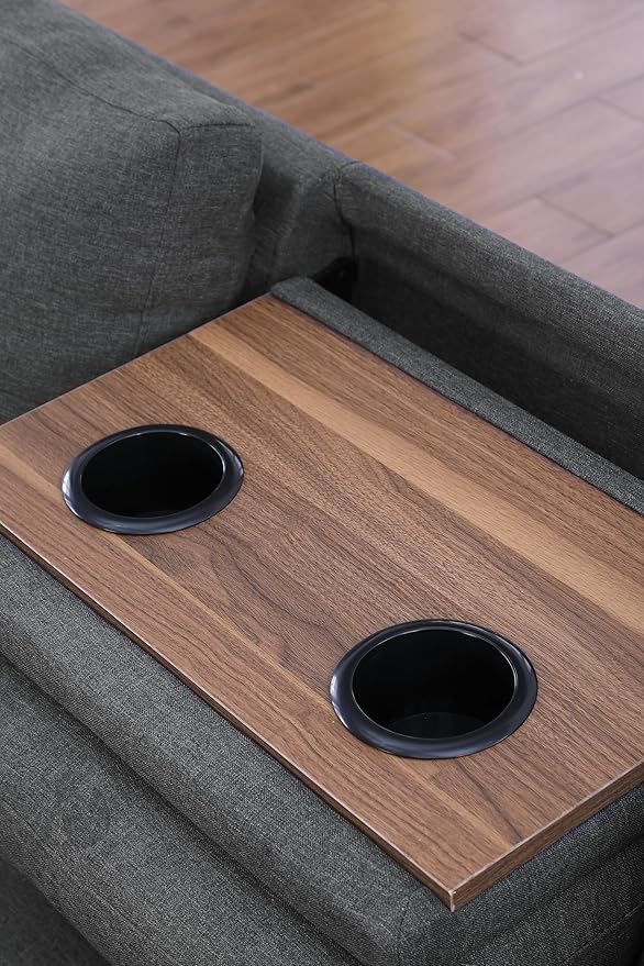 - Sectional Couch with 2 Cup Holders - Each piece features a solid and manufactured wood frame that rests on low-profile dowel legs. Wrapped in sleek, neutral-toned Linen, this set's cushions are filled with foam and have eight-way hand-tied springs to limit sagging over time. Rounded arms, subtle tufting, and nailhead trim complete this traditional design, One of the middle seats pulls down to reveal two cup holders for your favorite beverages