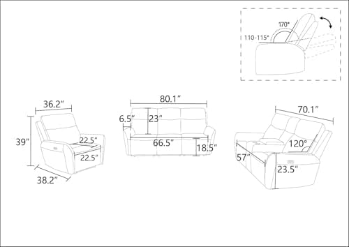 - Multifunctional Storage: Includes hidden storage compartments in the arms, seats, and sofa for small items. The ergonomic design tilts to 115-120° when closed and Can tilt to 160 -180 ° in extended state enhancing sitting comfort