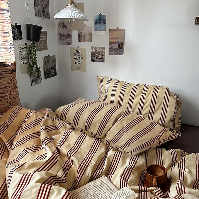 - ★【Vintag Design&A Perfect Holiday Gift】--Elevate your bedroom with mid-century geometric stripes in red-brown tones. The retro striped pattern adds a timeless boho vibe, while the cotton striped comforter set complements rustic, farmhouse, or eclectic decor. A stylish upgrade for any space! Perfect for daughter, son, husband, wife, kid, friend, guest, family, also a GREAT GIFT for weddings, birthdays, Mother’s Day, Valentine’s Day, homecoming, Christmas, holidays and more.