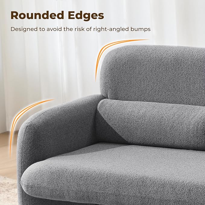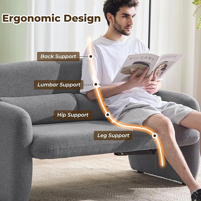 - ERGONOMIC CLOUD COMFORT WITH LUMBAR SUPPORT: This modern grey loveseat features plush high-density foam cushions and two lumbar pillows for all-day comfort. The ergonomic design with rounded edges provides body-contouring support while preventing accidental bumps. Perfect as a comfy couch for small spaces or deep seat sofa for lounging.